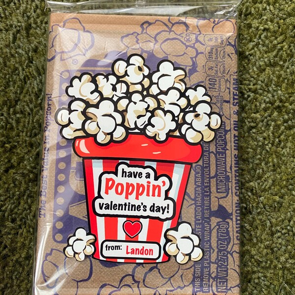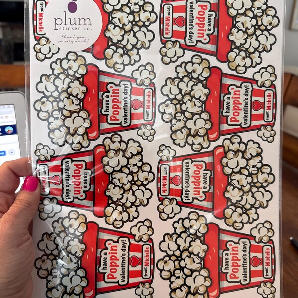 PERSONALIZED POPCORN VALENTINE STICKER - HAVE A POPPIN' VALENTINE'S DAY!